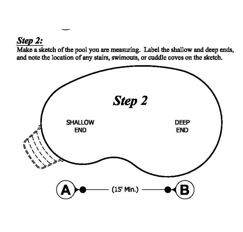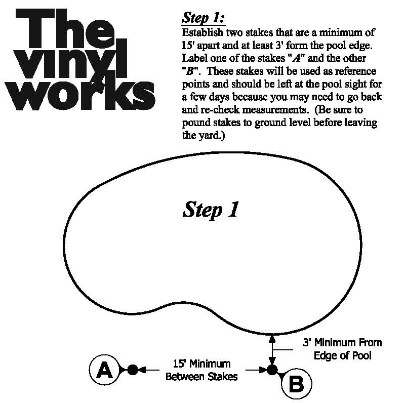 Never take any measurements or dimensions for granted. Considerable time and dollars are lost because a homeowner incorrectly identifies his pool or a contractor assumes that a nominal 16' x 32' pool is exactly 16'0" x 32'0". Dimensions vary among manufacturers and some installers make changes during the original installation of the pool. You should measure, record and order your liner on the basis of exact finished dimensions of the pool or the exact finished dimensions you are planning to use. From that point on leave the rest up to The Vinyl Works. They will tailor-make the liner for a proper fit. The proper procedure for measuring a typical pool for a liner is as follows: